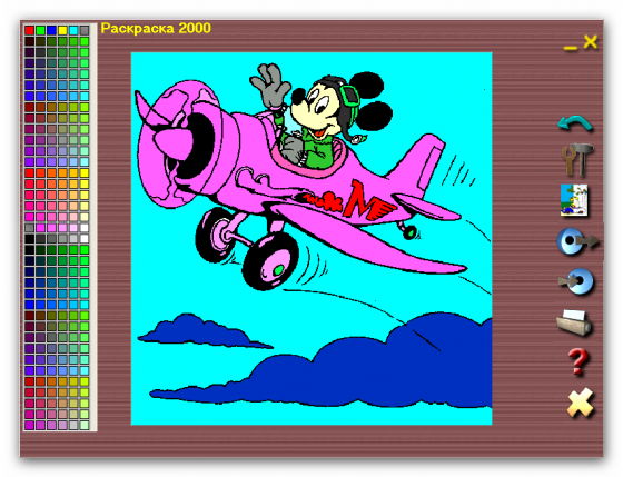 Увлекательная программа раскраска для детей!!! При небольшом размере позволяет использовать палитру в более чем 200 цветов, а также использовать текстурные заливки и добавлять свои картинки, которые затем можно раскрашивать. Картинки можно распечатать или сохранить.