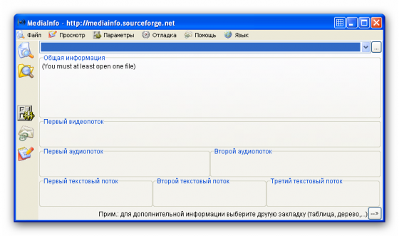 Программа позволяет получать технические данные и тэги из видео или аудио файлов. Программа выводит следующие данные: * общие для файла: название, автор, режиссер, альбом, номер звуковой дорожки, дата, продолжительность; * для видео дорожки: кодек, отношение сторон, частота кадров, скорость потока; * для аудио дорожки: кодек, каналы, язык, скорость потока.