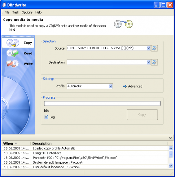 Blindwrite - это одна из программ, которая позволяет создавать и копировать практически любые CD диски, в том числе и защищённые. Пакет состоит из двух модулей - BlindRead и BlindWrite, отвечающих за чтение и запись соответственно. Программой поддерживаются более 160 типов (IDE, SCSI, USB, USB 2.0 и 1394) пишущих приводов. Драйвер Patin-Couffin обеспечивает работу PNP и горячее подключение/отключение устройств. Естественно, обеспечена работа в DAO, SAO и RAW режимах,а также запись On-The-Fly. Модуль BlindRead умеет работать с образами дисков типа ISO, CUE и BWT. Есть возможность создания аудио CD напрямую из MP3 файлов и совместной работы с программами-эмуляторами CD, такими как Daemon Tools.
