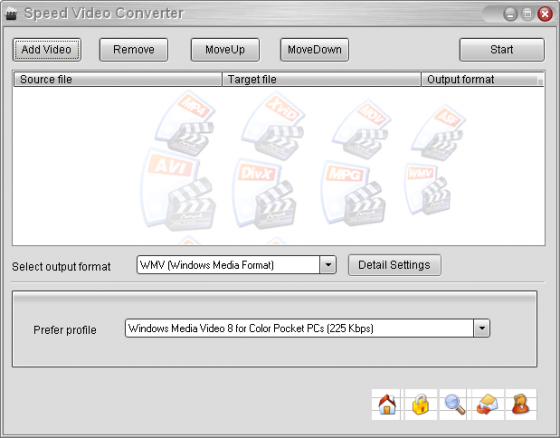 Маленький, высокоскоростной, с легким пользовательским интерфейсом, - это часто, самые сильные аргументы при выборе в пользу, того или иного видеоконвертора! Speed Video Converter быстрый конвертор видеоматериала, без какой либо "заморочки"! Необходимо загрузить файл и установить желаемые выходные параметры и ВСЕ, - процесс пошел! Speed Video Converter поддерживает различные видео форматы, такие как: AVI (Divx,xDiv), MPEG-4, MPEG (VCD,SVCD,DVD совместимые), WMV,ASF, Quick Time, VOB, DAT. Он конвертирует сразу и множество файлов (пакетное преобразование), для этого требуется всего один щелчок.