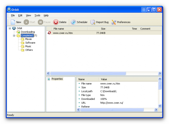 Orbit Downloader - менеджер закачек файлов из Интернета. Данная программа закачивает файлы в многопоточном режиме, поддерживает интеграцию с различными браузерами (Internet Explorer, Opera, FireFox и Maxthon), может закачивать файлы, расположенные в файлообменных сервисах, в частности, с RapidShare.com. Программа не требовательна к ресурсам компьютера. Orbit Downloader позволяет скачивать файлы по многим протоколам (HTTP, HTTPS, FTP, RTSP и MMS), может просматривать содержимое ZIP-файла до его скачивания и автоматически загружать файлы по расписанию, а также имеет расширенные настройки для работы через прокси-сервер. Предусмотрена возможность сохранения на компьютере флеш-роликов и потоковых аудио/видео данных, встречающихся на веб-сайтах. Если Orbit Downloader распознает такой тип контента на веб-странице, то он автоматически выводит на нем специальную кнопку для скачивания.