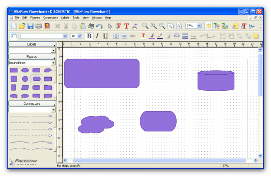 WizFlow поможет вам создать профессиональные графики и похожие диаграммы. Данная программа уникально разработана для простоты в использовании с маленьким курсом обучения. WizFlow позволяет вам работать с отдельными объектами или группами объектов, диалогами рисования или символами различных фигур и их соединений с линиями различных типов. Вы можете ввести объясняющий текст в любое место, используя решетку, которая поможет вам сохранить симметрию вашей работы. WizFlow управляется с трудными частями чертежей графика и позволяет вам сфокусироваться на схеме и исполнении. WizFlow имеет продвинутые функции, такие как: полное увеличение, OLE подключаемость для вставки графиков в другие документы, печать постеров, импорт и экспорт графики, автоматическая маршрутизация, кривые линии, символы и многое другое. К характеристикам относится: полное панорамирование и увеличение, печать постеров, связанные диаграммы в ваших документах, кривые линии, импорт клип арта, экспорт веб графики.
