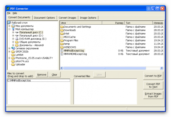 - Конвертирует изображения (JPG, GIF, BMP, PNG, TIF, WMF, EMF) в формат PDF.