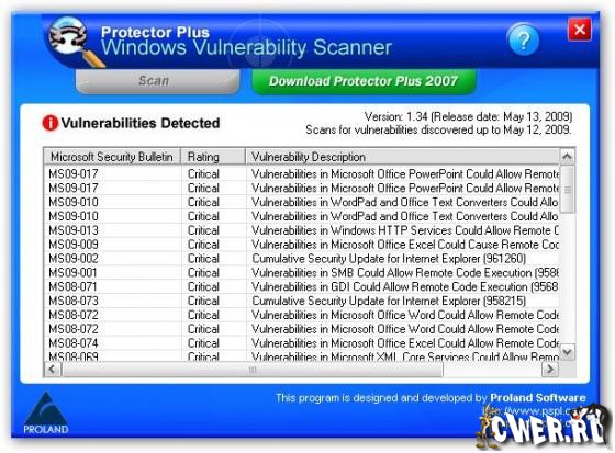 Windows Vulnerability Scanner cканирует операционную систему на уязвимости в системе безопасности, после чего позволяет подобрать соответствующие патчи для их устранения. По окончанию сканирования Windows Vulnerability Scanner выводит список обнаруженых брешей, соответствующий уровень опасности и ссылку на патч, их устраняющий.