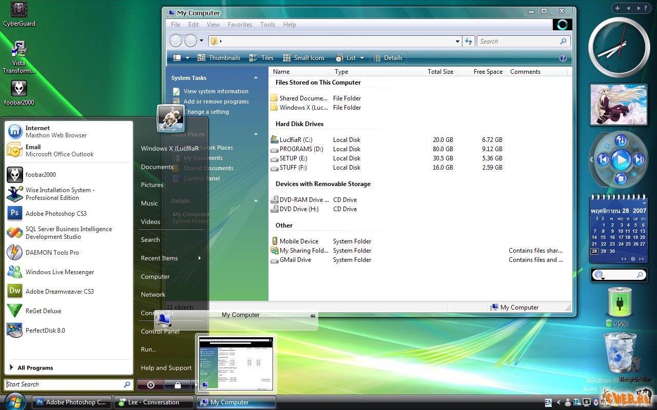 Vista Transformation Pack – самая известная программа для трансформации Windows XP в Windows Vista. В Vista Transformation Pack собрано самое лучшее от всех версий Windows Longhorn и Windows Vista. Прозрачные окна, оформление под Windows Vista, cайдбар, темы от Аэро. После установки у Вас создастся впечатление, будто у вас установлена Windows Vista.