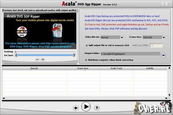 Основные возможности Acala DVD 3gp Ripper: