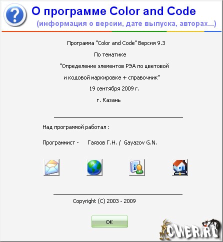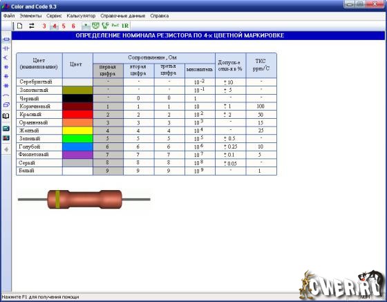 Color and Code - программа позволяет определить номинал или тип радиоэлементов по цветовой или кодовой маркировке, в дополнение содержит справочник по пассивным и активным радиокомпонентам.