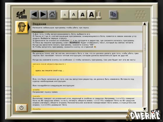 Трёхмерная обучающая стратегическая игра. Главной особенностью игры является возможность создавать программы, в соответствии с которыми в игре действуют роботы. Язык программирования, встроенный в игру, похож на C++ или Java. Поначалу кажется, что ничто не предвещает беды. Имеем толстого розовощекого астронавта с кошмарной физиономией под шлемом скафандра, кучу заточенных под разнообразные задачи роботов, полтора десятка зданий для всевозможных нужд и количество полигонов на одну модель ниже допустимой нормы. Впрочем, в определенной доле обаяния этим куцым поделкам и практически схематичным ландшафтам все же не откажешь, несмотря на то, что рисовали их, скорее, те же люди, которые занимались и программированием.