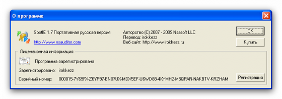 Скачать программу Portable Nsasoft SpotIE 1.7 (1,34 МБ):