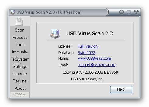 После присоединения устройства к компьютеру программа автоматически сканирует его, блокирует и удаляет вирусы. Решает проблему с невозможностью открыть диск двойным щелчком в Проводнике Windows. USB Virus Scan также способна удалять остатки вируса с носителя, которые не были удалены другими антивирусными программами. Например, удаляет файлы autorun.inf, которые оставляет за собой вирус W32.Downloader и ему подобные. USB Virus Scan имеет небольшой размер, позволяет быстро сканировать съемные диски и не требует регулярных обновлений файла сигнатур.