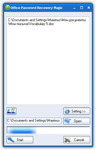 Office Password Recovery Magic – программа для восстановления потерянных или забытых паролей от документов Word, таблиц Excel, PowerPoint и баз данных Access. Данная программа поможет восстановить пароли от документов следующих форматов: *.xls, *.ppt, *.mdb, *.doc, и Office 2007. Поддерживается перебор по цифрам, буквам и символам или атака по словарю. Данная программа имеет удобный и понятный пользовательский интерфейс.