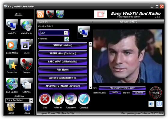 Easy WebTV And Radio предоставляет свыше 3400 телеканалов и радиостанций со всего мира. В не зависимости дома вы находитесь, или на работе, или в командировке в другой стране - у вас всегда будет возможность посмотреть необходимый ТВ-канал и услышать любимую радиостанцию. Мощное развитие интернета в последние годы позволяет превратить ваш компьютер почти в полноценный телевизор и радиоприемник за несколько минут. Будущее телевидение и радио уже приходит постепенно к каждому пользователю, возможно именно в этом направлении и будет развиваться. Никакого ТВ-тюнера, тем более ежемесячной абонентской платы, ни спутниковой антенны уже не потребуется.