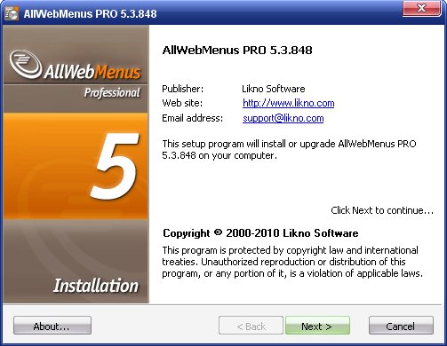Скачать программу AllWebMenus Pro v5.3 Build 848 (9,28 МБ):