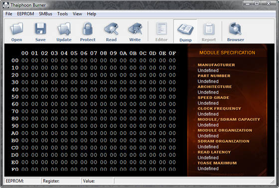 Thaiphoon Burner is the first Windows application in the world that discovered a new popular direction in overclocking by programming SPD content directly on the motherboard of the personal computer. This eliminates the need to use hardware EEPROM programming devices. With the help of Thaiphoon Burner it is possible to program SPD EEPROM devices of DRAM modules on any home, office and server motherboards. No any special skills or devices required! Besides, Thaiphoon Burner is the only tool to protect SPD content from being programmed by activating the Permanet Software Write Protection feature of the SPD EEPROM device. This makes the utility to be the best choice for DRAM module manufacturers and OEM suppliers.
