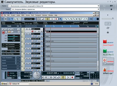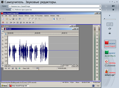 Данный самоучитель предназначен для всех, кто впервые сталкивается со звуковыми редакторами Sound Forge, ACID Pro, Cubase, Wavelab и желает научиться использовать их функции и возможности для плодотворной работы. Интерактивные уроки, озвученные профессиональным диктором, возможность непосредственно участвовать в обучающем процессе помогут Вам быстро в полном объеме овладеть возможностями программы.
