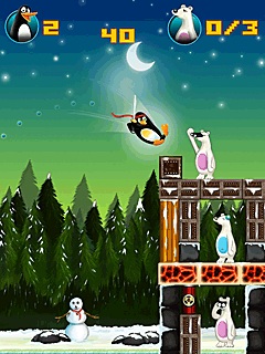 Обороняйтесь от арктических белых медведей стреляя по ним пингвинами из рогатки в этой великолепной игре! Играйте на протяжении более чем 50 уровней в режиме кампании или 20 взрывных уровней в режиме Frenzy! Заработайте все достижения и разблокируйте секретных пингвинов братства, в том числе пингвинов Bomber, Armor и Glider. А также у белых медведей появился новый союзник - панды! Размеры экранов: 128x160, 176x220, 240x320.