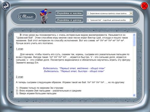 «Видеошкола игры на гитаре» поможет вам приобрести знания, необходимые для дальнейшего технического совершенствования, обрести уверенность в своих силах. А главное поможет вам стать душой любой компании!