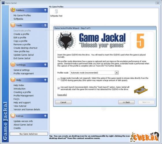 Game Jackal Pro - программа, которая позволяет играть во все ваши любимые игры, не вставляя оригинальный диск, что позволит ускорить загрузку игр, а также продлить жизнь компакт-диска. При этом Game Jackal Pro не изменяет никакой части игры и не создает виртуальные диски, а создает лишь профили игр в то время, когда вы в них играете. Версия Enterprise отличается тем, что специально предназначена для всяческих интернет-кафе/салонов, есть поддержка передачи профилей по сети и удаленной активации игр.