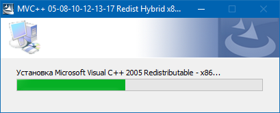 Во время установки сборки, производится поиск и удаление ранее установленных 32-х и 64-х разрядных версий Microsoft Visual C++ 2005-2008-2010-2012-2013-2015-2017 Redistributable Package.