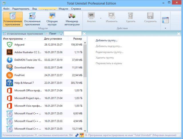 Total Uninstall - приложение, отслеживающее любые изменения в компьютере, которые происходят при установке программ. Затем при деинсталляции Total Uninstall позволяет полностью очистить систему от лишних файлов, папок и регистрационных ключей как в ручном, так и в автоматическом режиме.