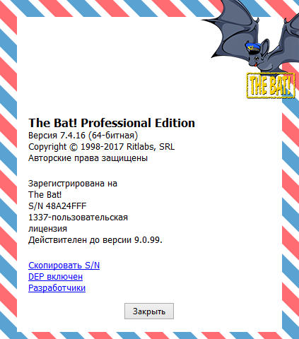 Скачать программу The Bat! Professional 7.4.16 (30,48 МБ):