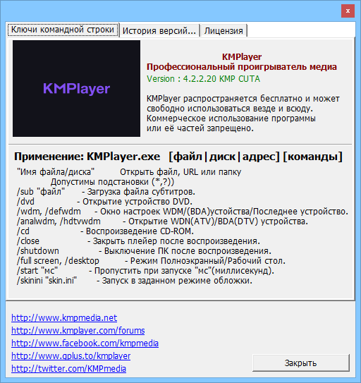 Вариант2 KMPlayer при запуске в версии 3.9 и ниже:
