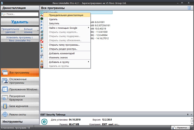 - Инновационный режим «Охотник» для деинсталляции и удаления приложений