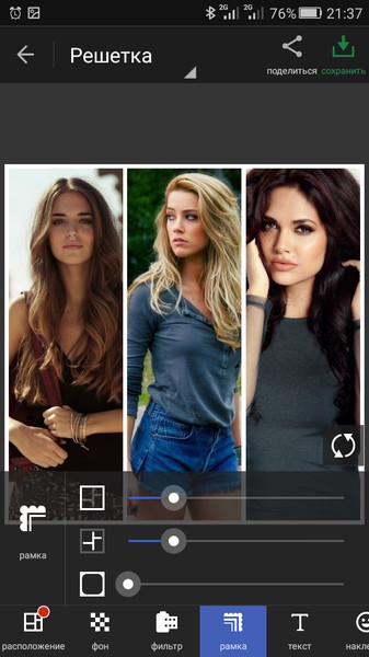- поделитесь своими коллажами с использованием Twitter, Facebook, Gmail.