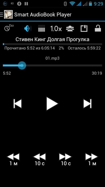 Smart AudioBook Player - удобное приложение, которое предназначено для проигрывания аудиокниг с возможностью управлять скоростью воспроизведения и загружать обложки книг из Интернета.