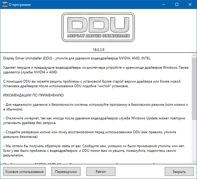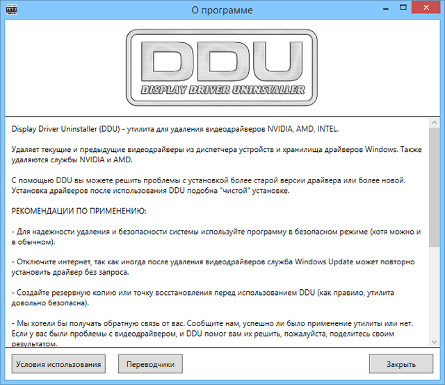Видеодрайверы AMD и NVIDIA могут быть удалены из панели управления Windows. Display Driver Uninstaller - программка, которая была разработана для использования в тех случаях, когда удалить драйвер стандартными средствами не удается, или в любом другом случае, когда вам нужно полностью удалить драйверы для видеокарт NVIDIA и ATI. Эффект от использования этой утилиты будет аналогичен первой установке драйвера на свежеустановленный Windows. Как и для любого инструмента такого рода, рекомендуется создать новую точку восстановления системы перед ее использованием, чтобы можно было вернуть прежнее состояние системы, если вы столкнетесь с проблемами.