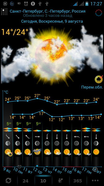 только поставщики погоды у нее не шибко. советую yr.no от норвежского метеорологического института, на северозапад россии - дьявольски точно. и есть приложение android, не такое красивое, но зато реальная сводка погоды.