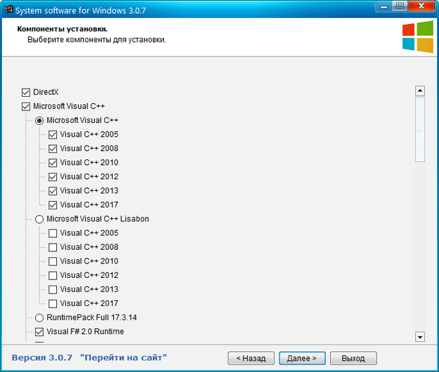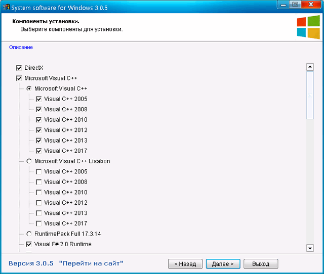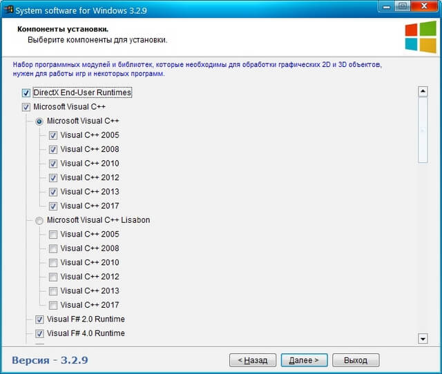 Часто ли у вас не запускается игра или программа из-за отсутствия того или иного системного компонента? Для вас создана небольшая утилита, чтобы автоматизировать процесс установки основных компонентов без которых трудно представить ПК. По умолчанию выбраны компоненты которые обязательны к установке. Установщик предложит только те компоненты для установки которые совместимы с операционной системой, в которой он запущен. Разрядность операционной системы также определяется автоматически. Установщик сам предложит перезапустить систему, если это необходимо для работы компонентов.