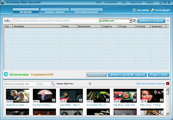 Streaming Video Recorder является единой программой для записи видео потоков, сериалов и фильмов от тысяч видео-сайтов, таких как YouTube, Google Video, Blip TV, Justin TV, CBS, и т.д. Запись никогда не была легче и быстрее. Пока видео проигрывается, встроенный детектор автоматически обнаружит и добавит их в очередь для загрузки.