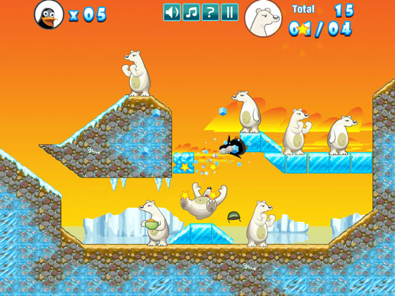 Забавная игра, в которой вы будете помогать пингвинам освобождать товарищей из плена и мстить белым медведям, которые постоянно издеваются над ними.