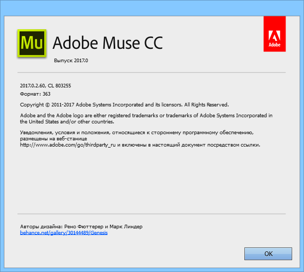 - В дистрибутив интегрировано обновление для Adobe Muse CC 2018 до версии 2018.1.0.266.