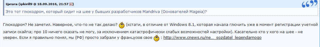 Была такая французская организация, которая производила дистрибутив Mandriva. Далее произошло банкротство Mandriva, в результате были уволены сотрудники, которые эту самую Mandriva и делали. Они основали в 2010 новый дистрибутив Mageia и уже выпустили релиз 1 сентября 2010 года. Сама организация Mandriva была выставлена на торги, и ее купила НТИЦ Роса. И по удивительному совпадению, релиз Rosa вышел позже почему-то. Но почему? Потому что потом уже как оказалось, пакеты Mageia были слизаны, даже не в виде .spec или .src.rpm, а прямо в бинарном виде.