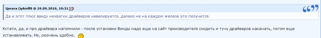 Далее в ответ пошел разговор о драйверах, что их якобы в Windows нужно скачивать: