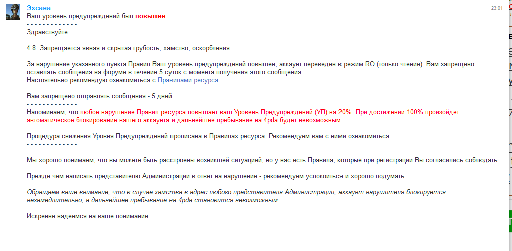Беседа продолжалась интеллигентно до тех пор, пока мне не приходит в ПМ сообщение следующего содержания:
