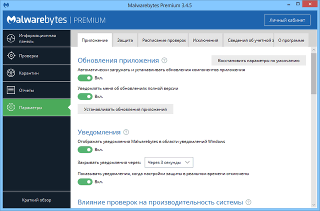 Данные проблемы наблюдаются, даже если программа MalwareBytes 3 PREMIUM не запущена, но модуль самозащиты включен.