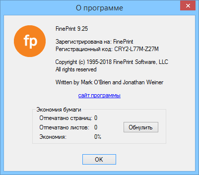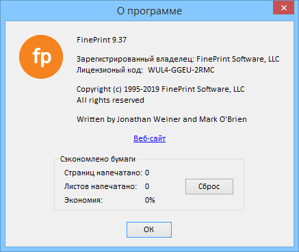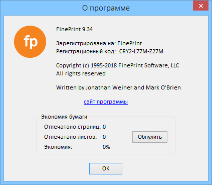 - Отображение количества сэкономленной при помощи FinePrint бумаги