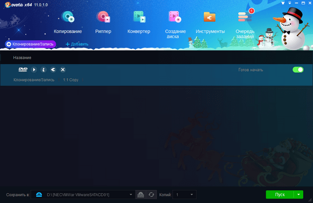 1. Предлагается 8 модулей копирования DVD Copy: весь диск, основной фильм, клонировать, записать данные, разделить, модифицировать, разделить выборочно, объединить.