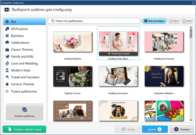 ФотоШОУ PRO - мощная программа для создания эффектных слайд-шоу и видеороликов из фотографий. Создавайте незабываемые слайд-шоу на любые темы: рассказы о путешествиях, праздниках, свадебные фотофильмы, Love Story и т.п. Программа включает сотни комбинаций эффектов анимации, позволяющих оживить любую фотографию. Вам точно не будет скучно.