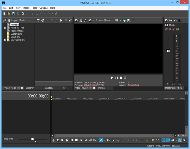 • Более тёмная цветовая палитра. Интерфейс Vegas Pro обогащён новой цветовой схемой, которая обеспечивает оптически нейтральное окружение для оптимизированного просмотра цветов и увеличения комфорта при работе в затемнённой монтажной студии.