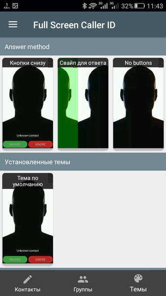 Full Screen Caller ID разрешает вам назначить для каждого человека из списка контактов любую картинку из галереи устройства, установленных приложений или прямо с камеры. Помимо этой функции, приложение имеет множество дополнительных возможностей. Среди них – настройка цветовой гаммы уведомлений, выбор размера текста, возможность ответить на звонок одним простым движением (свайпом), поддержка картинок в высоком разрешении.
