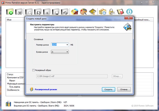 Благодаря Primo Ramdisk любой пользователь сможет создать виртуальный жесткий диск на своем персональном компьютере. Вам достаточно будет указать его размер, при этом не забываем, что выше доступной оперативной памяти размер указать не получится, ведь созданный диск будет находится в памяти компьютера.