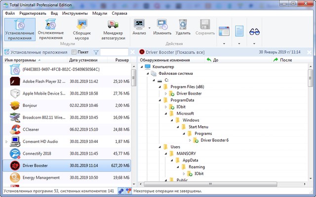 - Полное удаление, полный анализ и отслеживание программ.