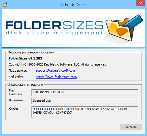 Скачать программу FolderSizes 9.8.584 x64 Enterprise Edition (28,72 МБ):