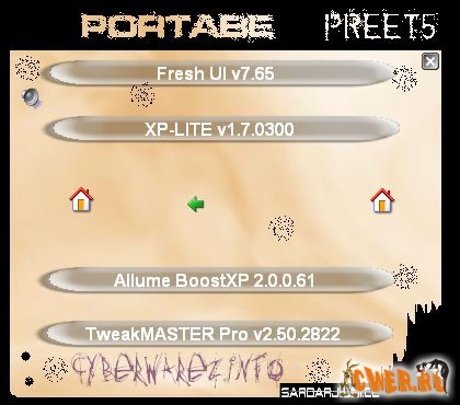 Allume BoostXP 2.0.0.61, Fresh ui 7.65, TuneUp Utilities 2006, System Mechanic MTK 6.0s, TuneUp Utilities 2007, TweakMASTER Pro v2.50.2822, XP-LITE 1.7.0300