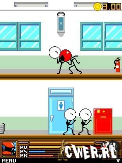 Оригинальные бои рисованных человечков ждут вас. В вашем арсенале имеется множество различных приемов: пинки, тычки, броски, удары головой. В промежутках между боями можно подкрепится и восстановить свое здоровье. Размеры экранов: 176x220, 176x208, 240x320.