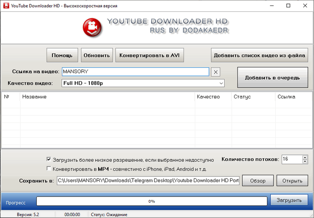 MassTube Plus — замечательная и простая в использовании утилита для быстрого и легкого скачивания видео с YouTube за пару кликов. Достаточно в строку поиска вставить ссылку на интересующий Вас видеоролик и нажать поиск, после чего программа предоставит список форматов и разрешений, в которых можно быстро скачать данный клип.